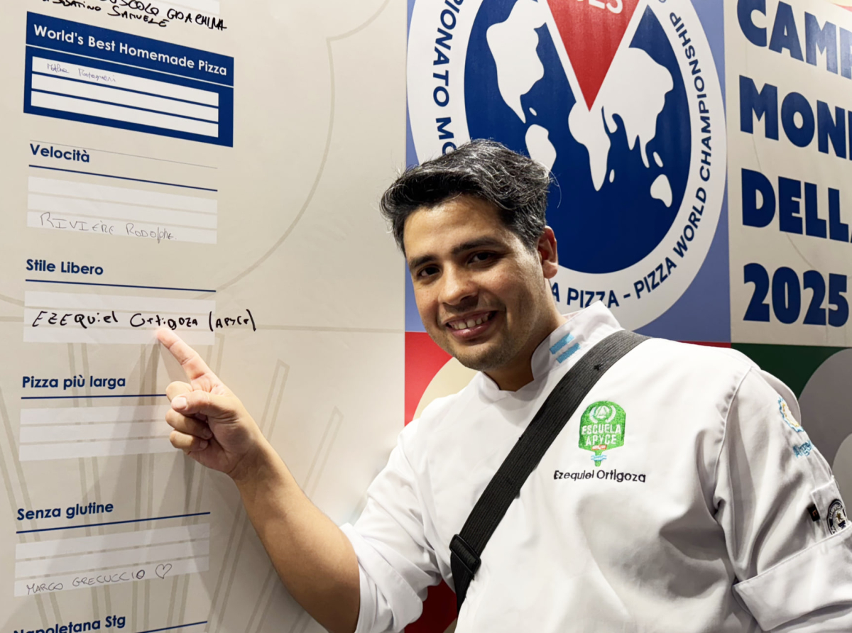 Otro nombre que dejó huella fue el de Claudio Izurieta, oriundo de Avellaneda y mejor clasificado argentino del certamen, con el puntaje más alto entre todos los participantes nacionales. Dueño de Cervecería 611 y 611pizzas, Izurieta es un ejemplo del recorrido formativo dentro de APYCE, donde completó la Carrera de Maestro Pizzero y Panadero Profesional, sumando especializaciones en la Scuola Italiana de Pizzaioli.